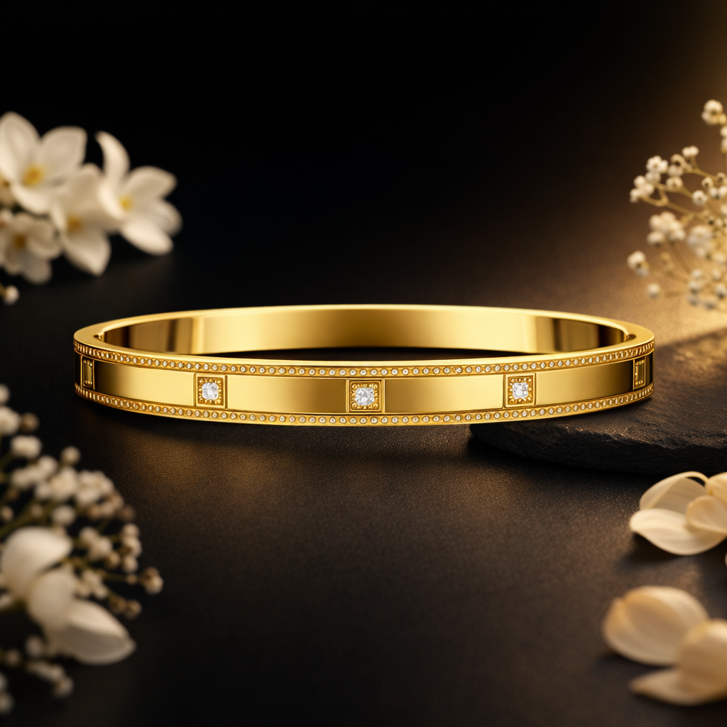 Finished with a high-polish anti-tarnish coating, this kada is designed to retain its shine and color even with regular use. Smooth edges and balanced weight provide a comfortable, skin-friendly feel, making it ideal for daily styling as well as special occasions.