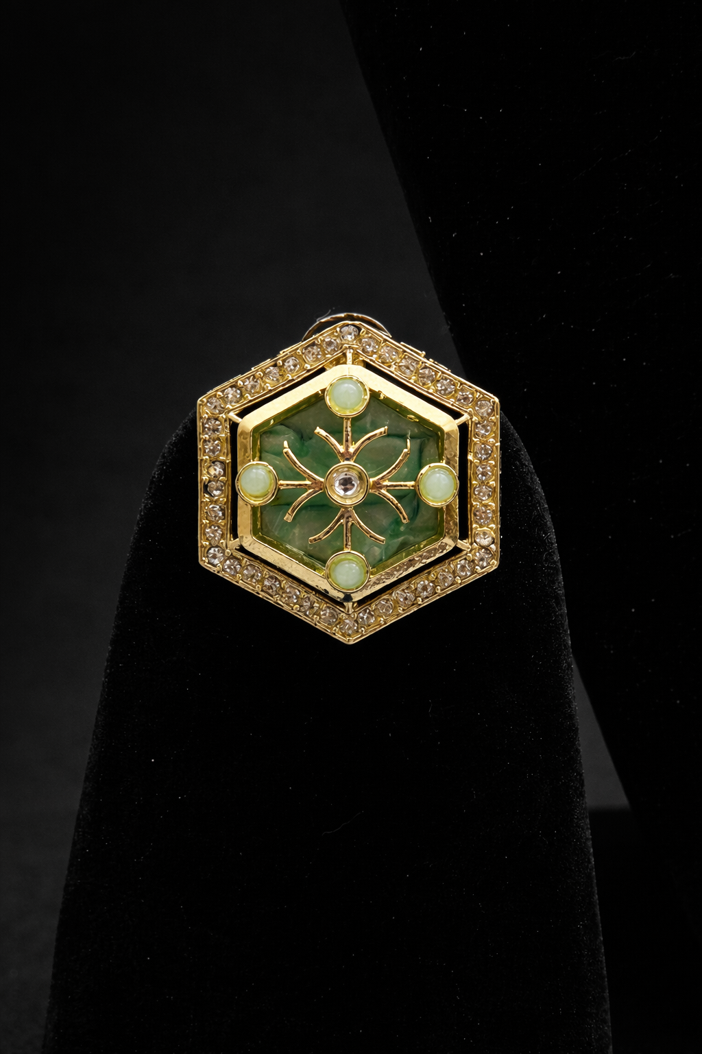 • Stones: Green stones with high-quality moissanite